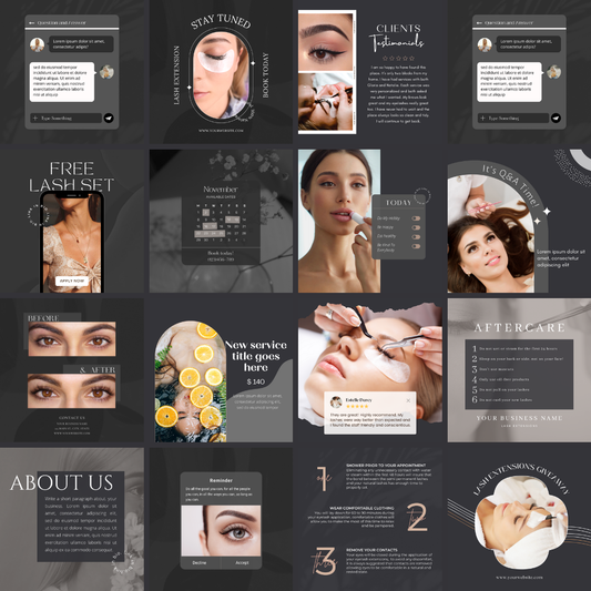 Capture the beauty of your lash artistry with our chic and feminine Lash Insta Post Templates. Specially designed for lash artists, these templates add a touch of elegance and style to your Instagram feed. Whether you're showcasing stunning lash transformations, announcing special promotions, or celebrating your clients, these customizable templates will help your brand shine with grace and sophistication.
